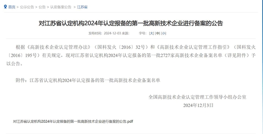 12月3日,天下高新手艺企业认定管理事情向导小组办公室正式通告了江苏省2024年认定报备的第一批高新手艺企业备案名单,K1体育(以下简称“K1体育”)依附其在手艺立异、知识产权、产品研发及转化等方面的卓越体现,再次乐成获得国家高新手艺企业资质认定,证书编号为GR202432000848。
